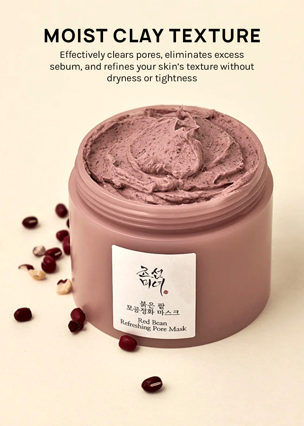 Red bean has been an important herbal ingredient throughout Korean history as well as a beloved skin care ingredient. Women of Joseon, who emphasized skin care that creates clear and clean skin, used mung beans and red beans ground together to wash their faces. The rich saponin in red beans helps with the adsorption of sebum and acts as a natural exfoliant.