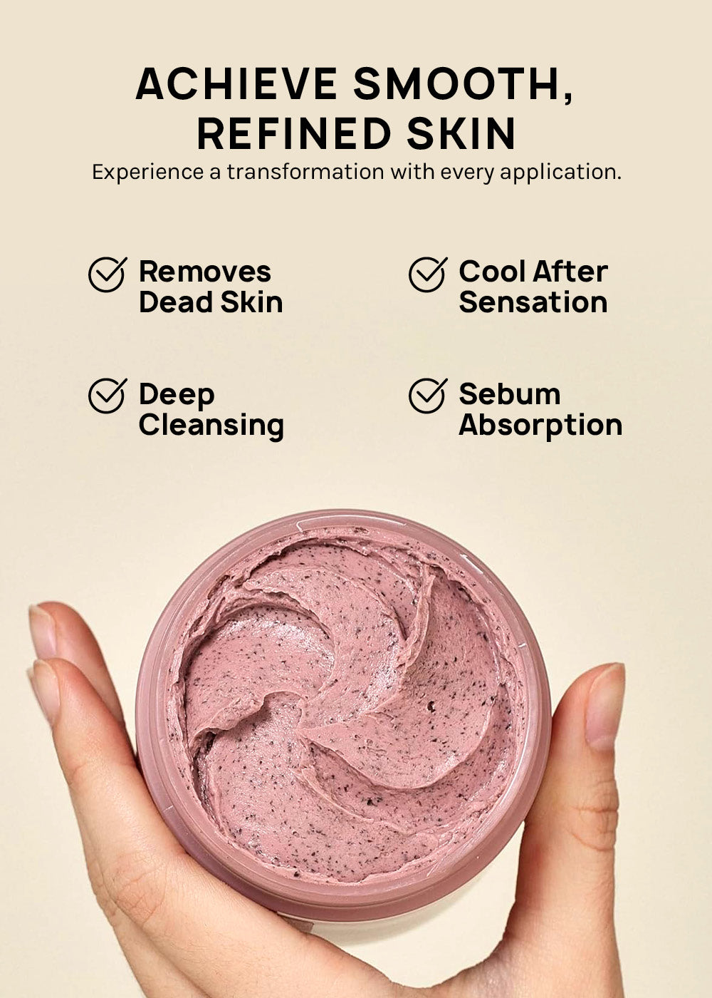 The moisturizing soft mud formulation helps to absorb sebum and remove wastes without dryness or tightness. At the same time, it provides a refreshing cooling feeling.