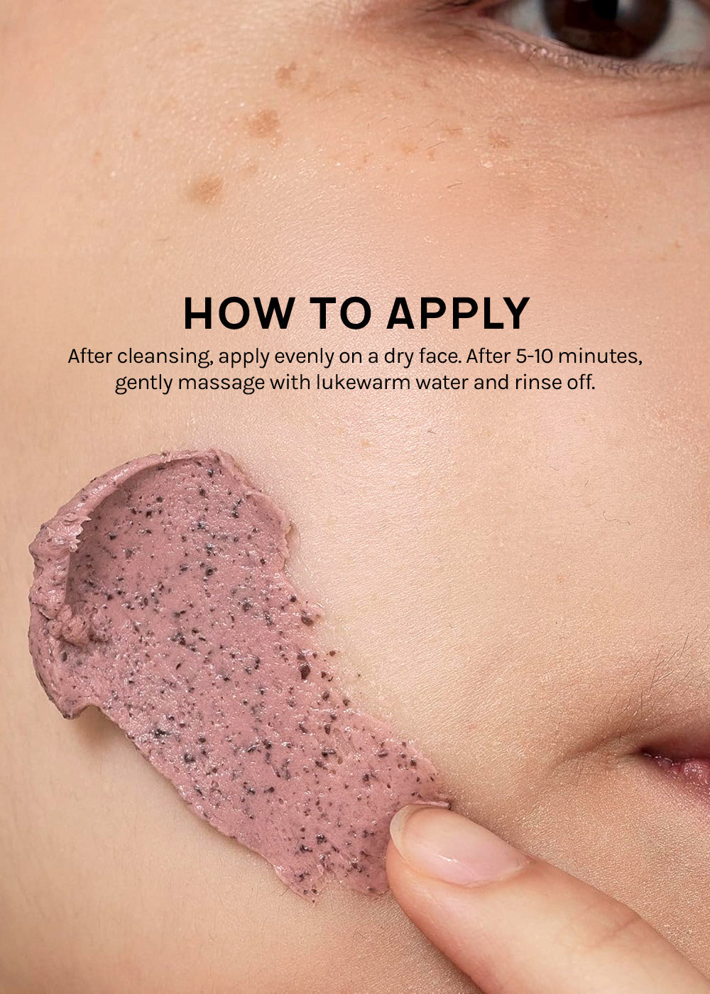 After 5-10 minutes, gently massage with lukewarm water and rinse off.