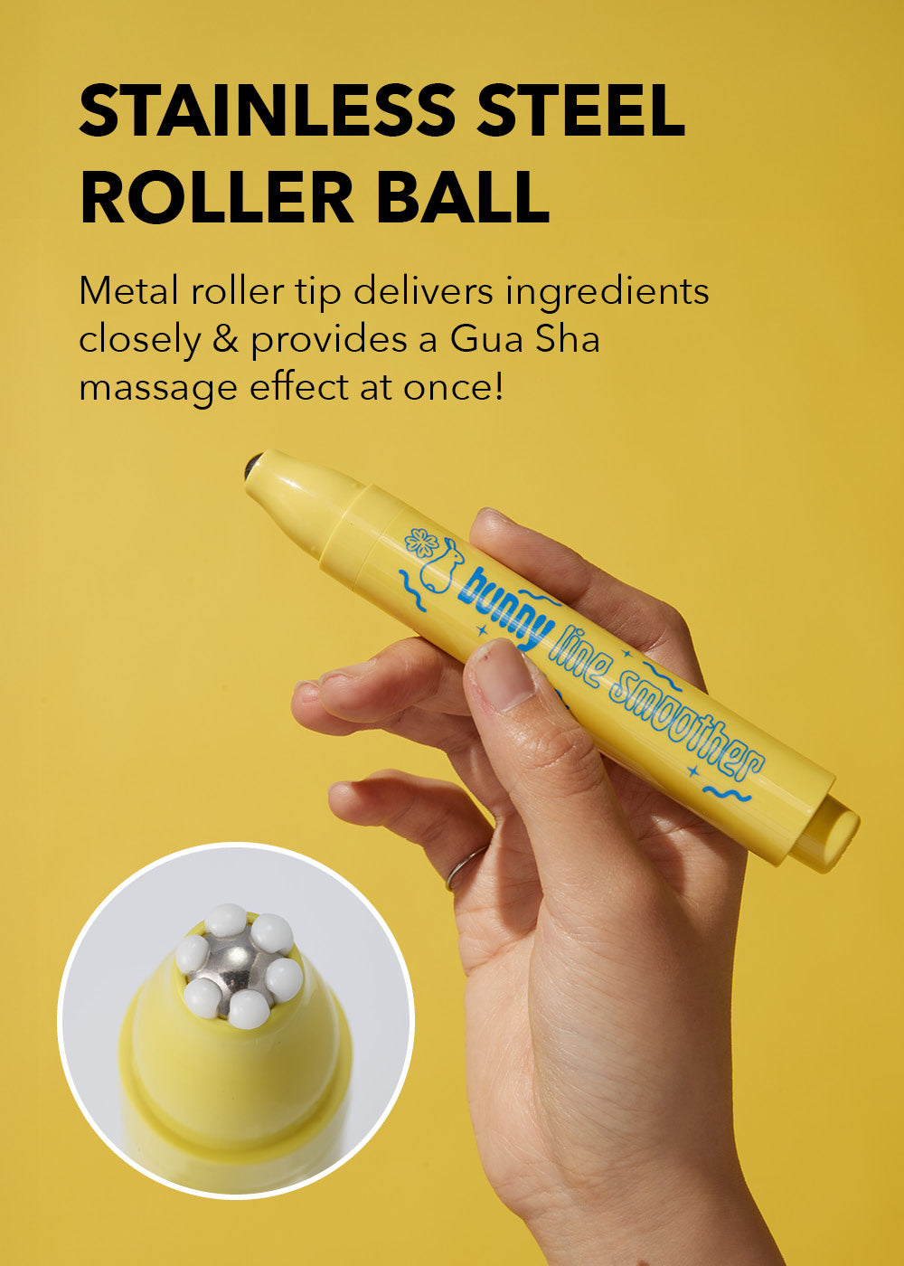 Bunny Line Smoother Eye Cream has a unique rolling stick that smoothly fills in deep fine lines, creases, and wrinkles for smoother and younger-looking skin. You can also use this eye cream applicator to massage other areas of the face for a moisturizing effect.