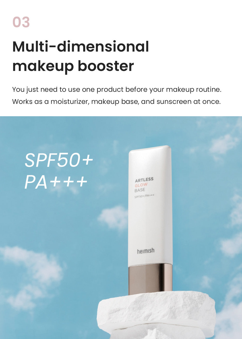 Moisturizer, Sunscreen to Makeup Base - Are there too many steps you can't skip? This soft cream textured all-in-one primer serves as a moisturizer, face primer, and sunscreen with shimmery golden pearl glow.