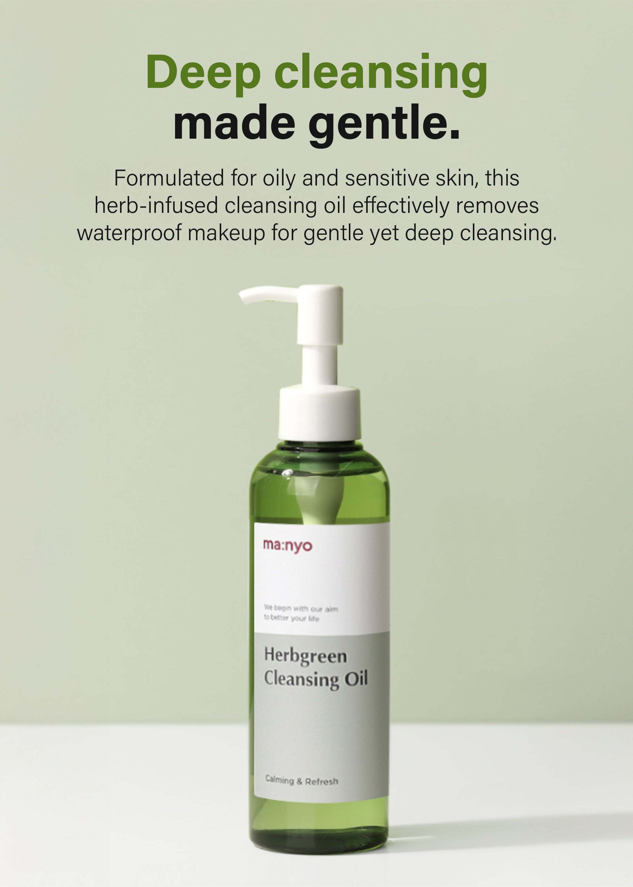 The Herb Green Cleansing Oil is gentle yet powerful, cleaning the skin's surface without stripping it of essential moisture, leaving you feeling replenished, and refreshed. The herb extracts help to soothe and calm your skin while cleansing.