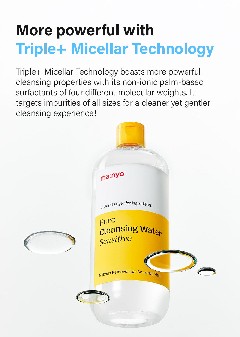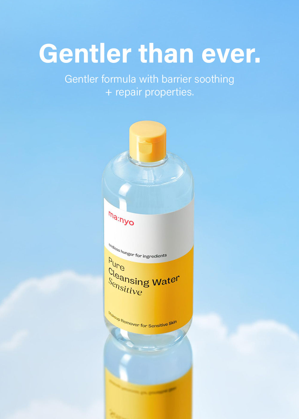 The Pure Cleansing Water Sensitive thoroughly cleanses not only makeup but also skin impurities with 3 fermented complex that reveal smooth skin surface and moist skin that never gets dry.