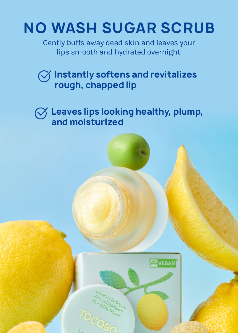 A special care lip mask where the sugar scrub pushes away dead skin cells and melts with a balm formula containing lemon oil and olive oil to moisturize and smooth dry lips.